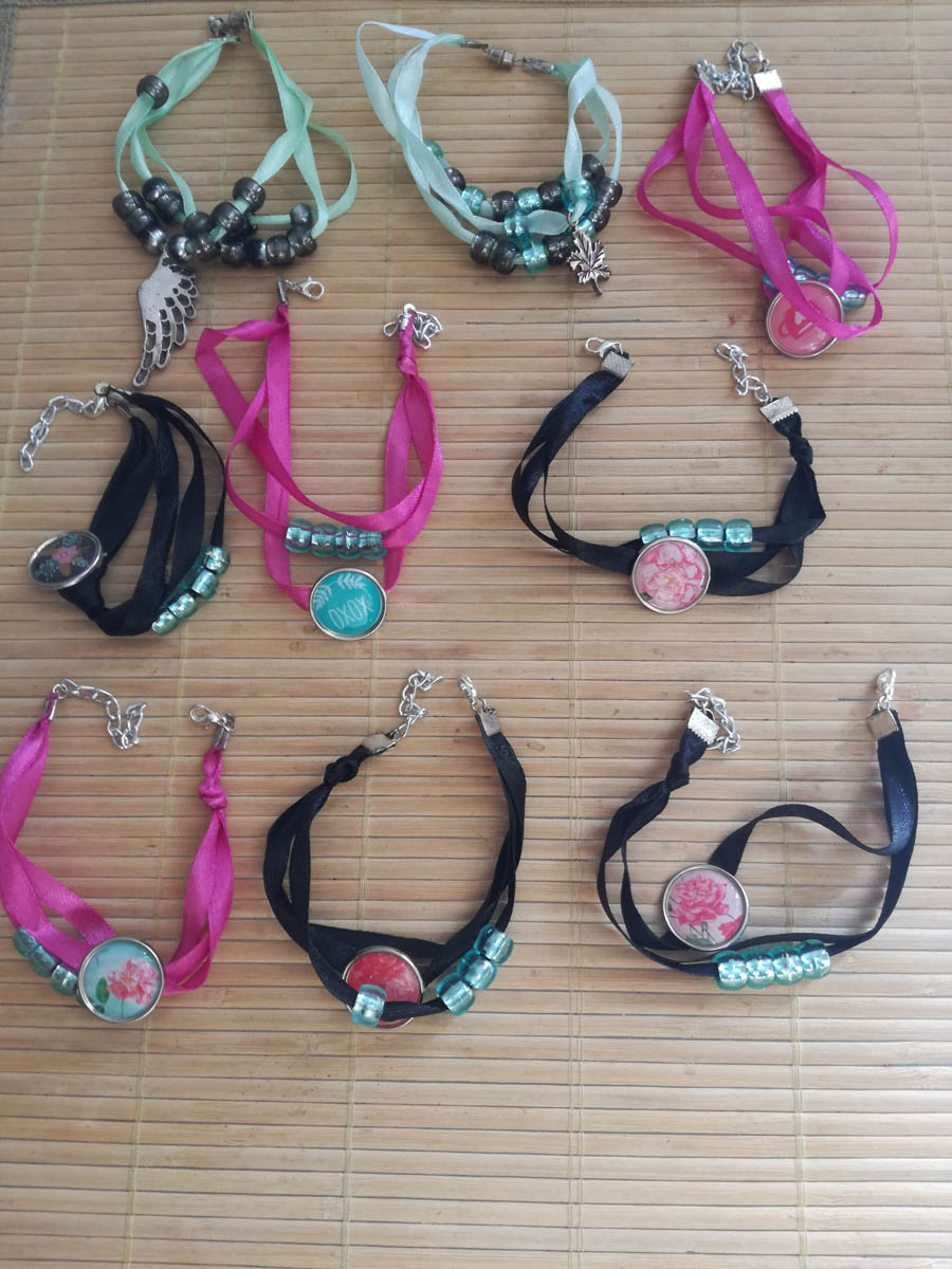 Non classéBleusby Aurore_adminLeave a Comment on Bleus Collier, bracelet avec fermetures réglables et boucles d’oreilles tige assorties. Ton bleu.