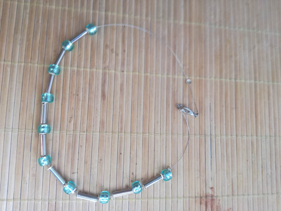 Collier noir à 4 fils dont un en soie, avec 3 breloques. Fermeture réglable.
