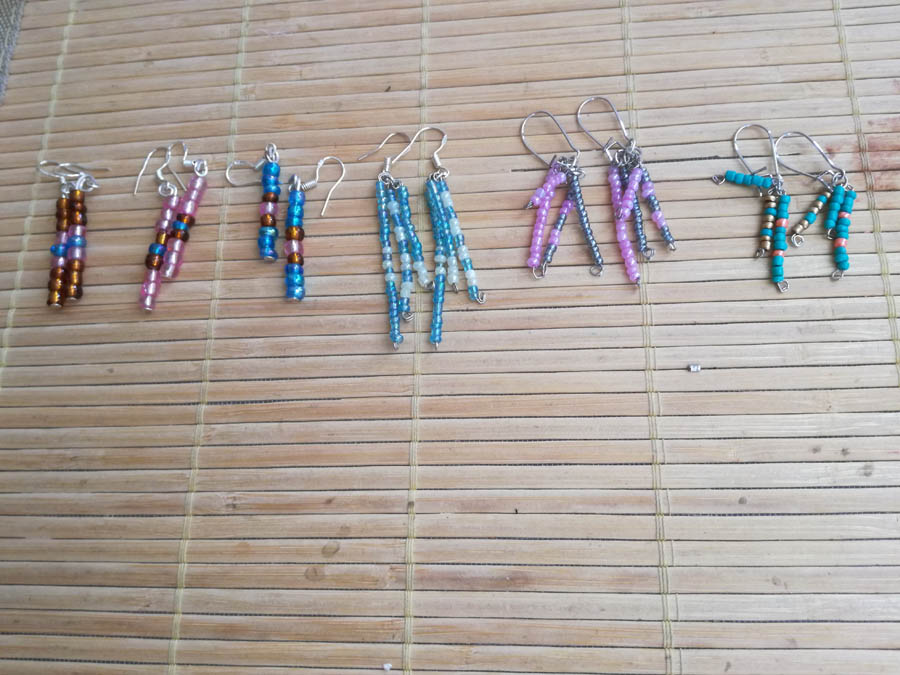 Boucles d’oreilles tiges et boucles d’oreilles trois fils diverses couleurs.