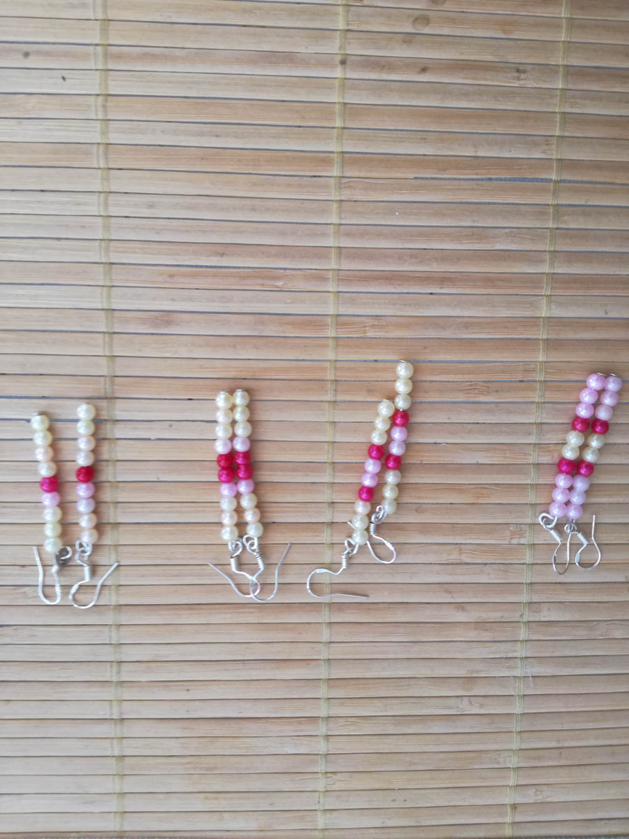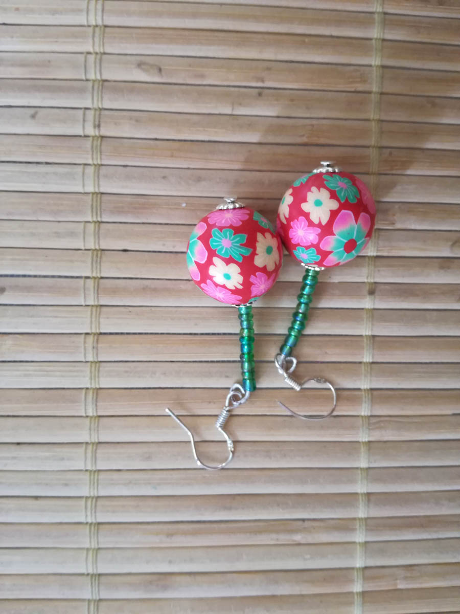 Boucles d’oreilles en tige, avec grosses perles fleuries.