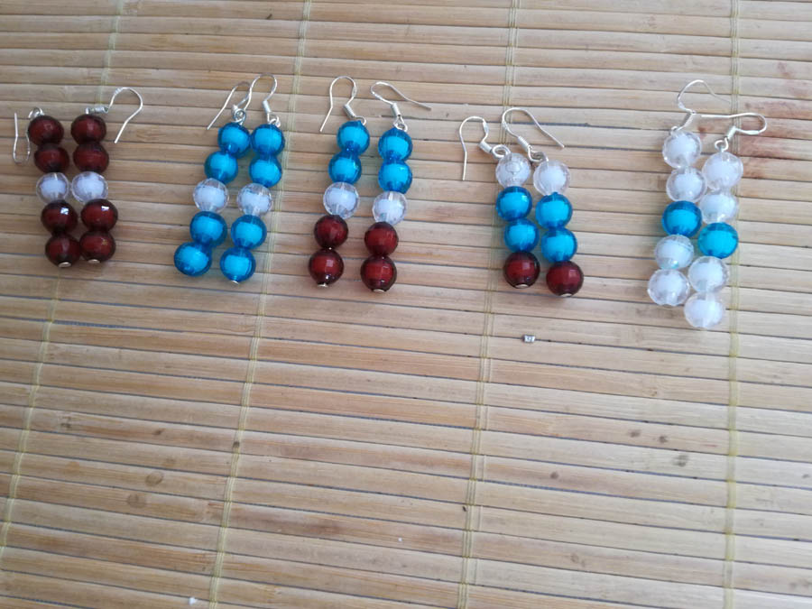 Boucles d’oreille tiges de diverses couleurs: turquoise, blanc et rouge vin.